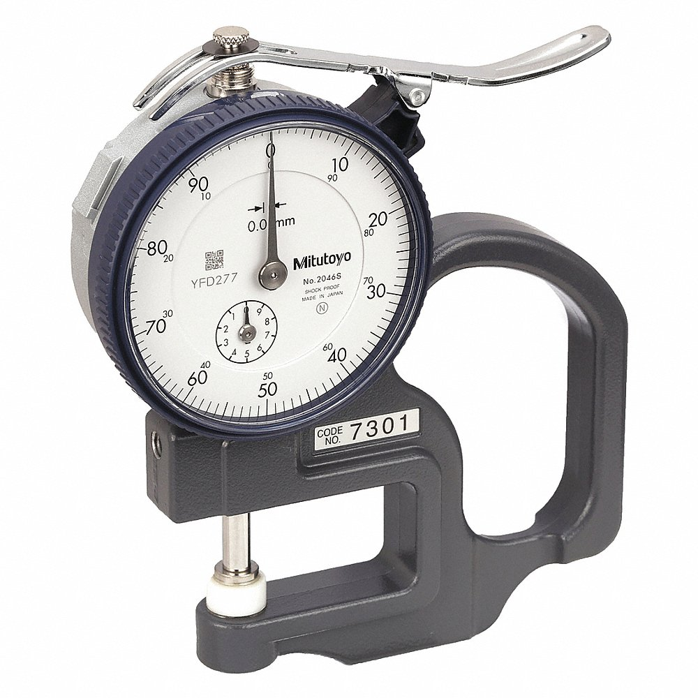 Thickness gages are used to determine the thickness or gage of metals, plastics, woods or small instruments and are ideal for use in mechanical and industrial engineering applications. Raptor Supplies offers a wide range of thickness gages from brands like Starrett, Mitutoyo, Proto and Westward. Dial thickness gages have a jaw which features steel measuring contact pins and a handle & lever. The item to be measured is inserted between the contact pins and the lever is released, with the pins closing over the surface and measuring the thickness of the material. Mitutoyo thickness gages are designed for quick and efficient measurement of small dimensions. These thickness gages feature an ergonomic grip handle which reduces user fatigue and spring loaded plunger which makes the instrument easy to use. They are suited for measuring the thickness of paper, film, wire, sheet metal and similar materials. Starrett thickness gages have straight leaves and are used in aviation, diesel, automotive and farm equipment manufacturing applications. These gages are made from the finest tempered-steel and feature a locking device which allows secure locking of one or more leaves in position. They come with a rugged steel case which protects the leaves and are specially used for adjusting tappets, spark plugs and distributor points.
