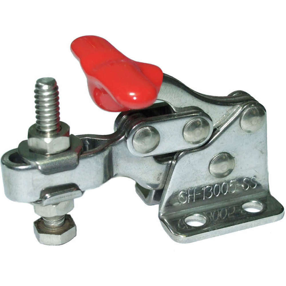 Vertical handle toggle clamps are used in heavy duty vertical clamping operations due to their high clamping capacities and reliability. Raptor Supplies is an authorized vertical handle toggle clamp distributor for various brands like Destaco, Clamp right, Bessey etc which are available in different bar size, base length, base width, diameter and load capacity.