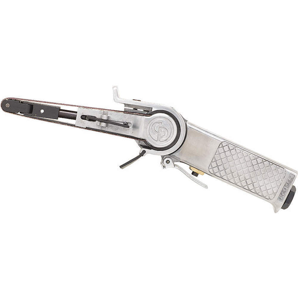 Air belt sanders are used for stripping layers of paint or rust, clean and smooth workpiece surfaces and sculpt contours. Raptor Supplies offers a wide range of these air belt sanders from brands like Speedaire, Chicago Pneumatic, Dynabrade and Ingersoll-Rand. These air belt sanders run on compressed air and require minimum preparation. Dynabrade belt sanders have larger openings, as compared to other standard sanders, for better belt tracking and facilitate working with a composite belt guard for quick-changing of abrasive belts. These units feature a patented design which allows compatibility with 1/8 Inch (3 mm), 1/4 Inch (6 mm) or 1/2 Inch (13 mm) wide x 24 Inch (610 mm) long abrasive belts. Air belt sanders from Chicago Pneumatic are engineered for working in constrained spaces and feature a sanding head which pivots to 360 degrees for multi-position sanding. They come equipped with an ergonomic handle for extended use and facilitate easy change of abrasives and the contact arm.